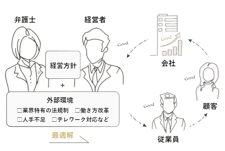私がこれまで出会った経営者の方々には、業界特有の法規制や人手不足の中にありながら、労働法をしっかりと守りたい、従業員が働きたいと思える職場づくりをしたい、そうすることで会社のお客様により良い商品やサービスを提供していきたい、と考えている方が多くいらっしゃいました。